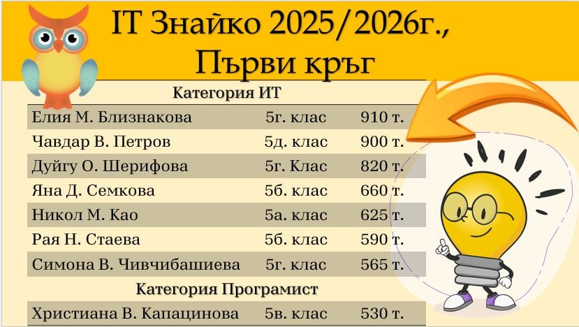 С гордост споделяме, че ученици от 5. клас се класираха за втори кръг на националното състезание IT Знайко.