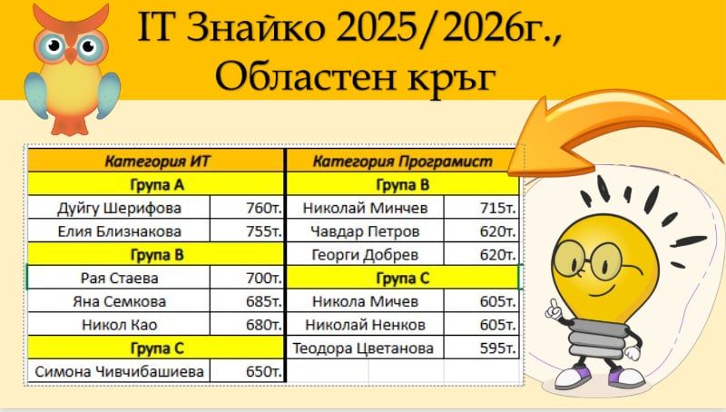 Поздравяваме всички участници за усилията и постигнатите резултати и им пожелаваме успех на следващия етап!
