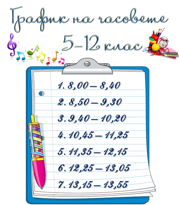 Седмично разписание на часовете за 2025/2026 учебна година