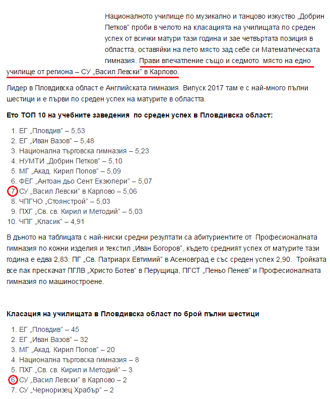 за Отново в ТОП 10 на училищата по среден успех в област Пловдив