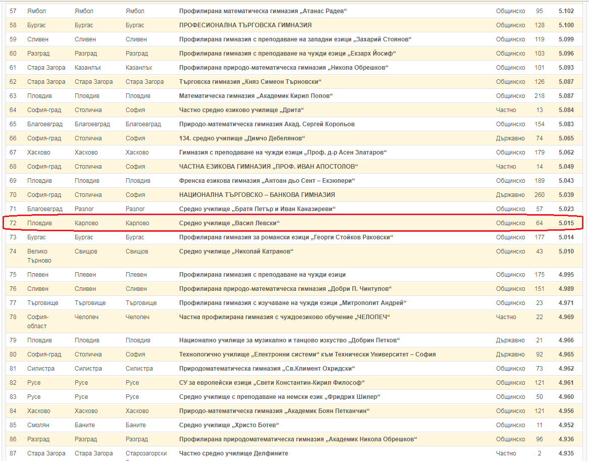 За поредна година СУ“Васил Левски“ е в ТОП 100 по резултати на учениците на матурата по български език и литература!