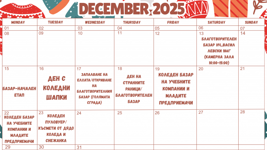 „Коледа в училище“- календар на коледните събития в СУ „Васил Левски“ – Карлово