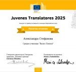 На специално събитие днес бяха обявени резултатите от конкурса по превод на Европейската комисия “Juvenes Translatores”. С гордост съобщаваме, че наша ученичка се нареди сред най-добрите млади преводачи в Европа! Александра Стефанова, ученичка от 11. в клас, получи специално отличие за превода си от английски на български език, направен в реално време в състезателния ден […]